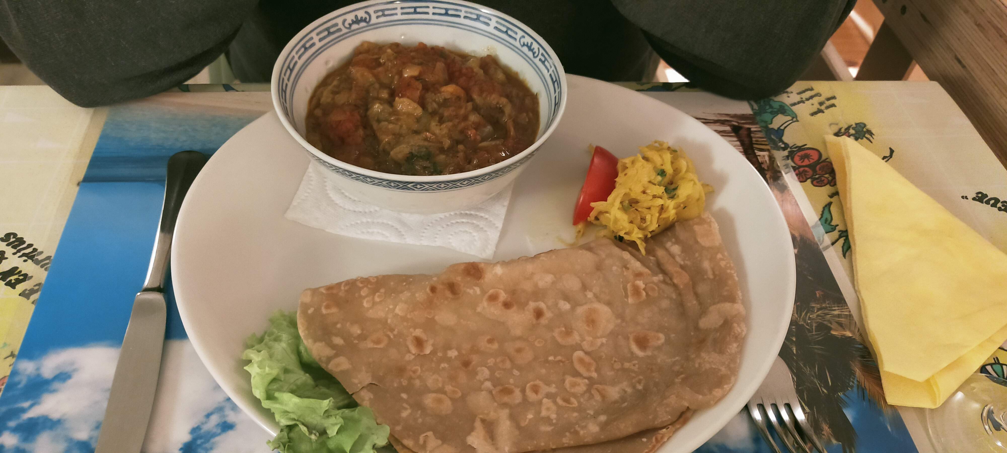 Sympathique... authentique... un vrai mélange de saveurs massala et rougaille parfaits attention la petite sauce pimenté porte bien son nom.. à decouvrir